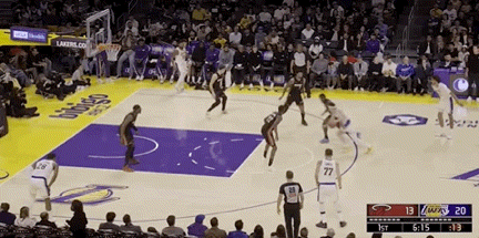小李潇洒高抛,詹姆斯起飞双手灌筐