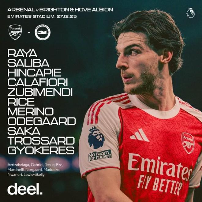 北京时间12月27日23:00,英超第18轮,阿森纳主场对阵布莱顿。赛前首发公布。